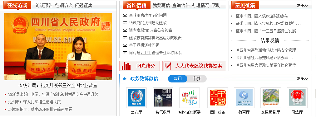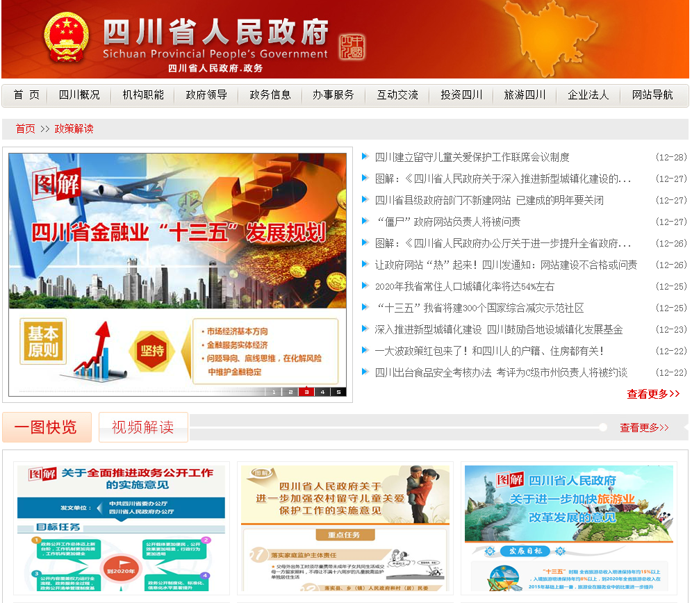 当前,在“互联网+”背景下,四川各级政府网站紧紧围绕省委、省政府中心工作,深入推进行政决策、执行、管理、服务和结果公开,大力推进重点领域信息公开,公开质量和实效进一步增强。作为领头羊的省政府网站,更是发挥着全省政府网站龙头作用,以上率下。在省政府中心工作和群众关心关注的三公经费、公共服务、民生工程等重点领域加大了公开力度。