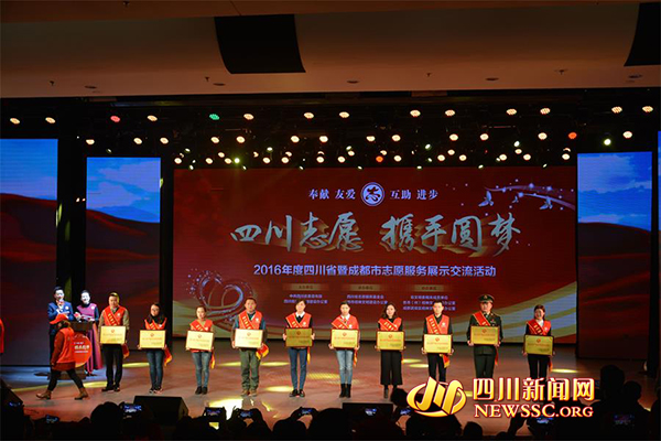 据介绍,省委宣传部、省文明办、省志愿服务基金会于今年7月至11月在全省组织开展了“四川志愿·携手圆梦”2016年度四川省志愿服务评选活动,经过层层评选、推荐、网络展示投票、评委投票和公示,最终评选出“四川省十佳志愿服务项目”、“四川省十佳志愿服务组织”、“四川省十佳志愿服务社区”、“四川省十大最美志愿者”和“四川省志愿服务贡献奖”。