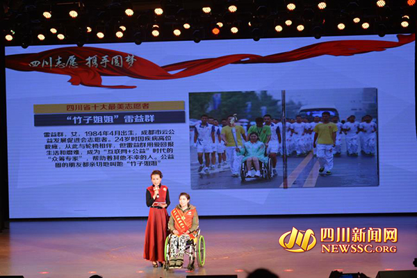 坐在轮椅上的“竹子姐姐”雷益群,荣获“十大最美志愿者”。她自强不息、无私奉献的事迹,像所有的获奖者一样感染了在场的每一个人。