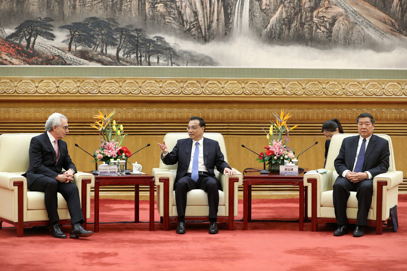 国务院总理李克强12月17日下午在人民大会堂会见第三届“读懂中国”国际会议代表并同他们座谈。30多位全球著名前政要、战略家、企业家和学界知名人士参加。