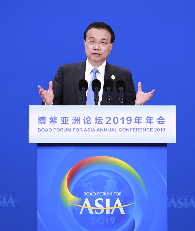 国务院总理李克强3月28日上午在海南博鳌出席博鳌亚洲论坛2019年年会开幕式,并发表题为《携手应对挑战实现共同发展》的主旨演讲。来自五大洲60多个国家和地区的2000多位政界、工商界代表和智库学者参加。