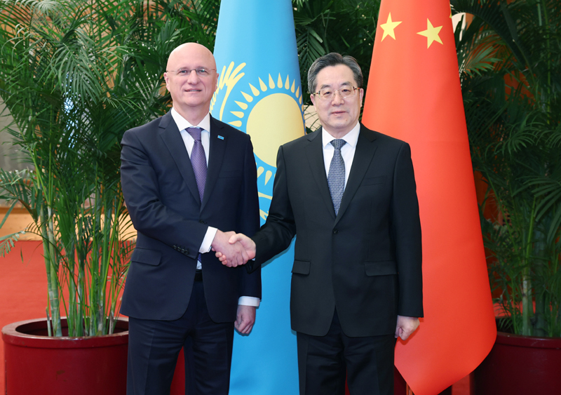 丁薛祥表示,中哈是守望相助的好邻居、共谋发展的好朋友、互利共赢的好伙伴。在两国元首亲自关心推动下,中哈关系保持快速发展态势,成为国家间关系的典范。去年7月,习近平主席对哈萨克斯坦进行国事访问,同托卡耶夫总统一道作出战略部署和统筹规划,为中哈永久全面战略伙伴关系发展指明方向、擘画蓝图。双方要落实好两国元首重要共识,进一步巩固政治互信,坚定相互支持,加强发展战略对接,深化务实合作,更好造福两国和两国人民。