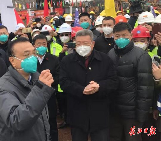 (图为李克强在火神山医院施工现场)