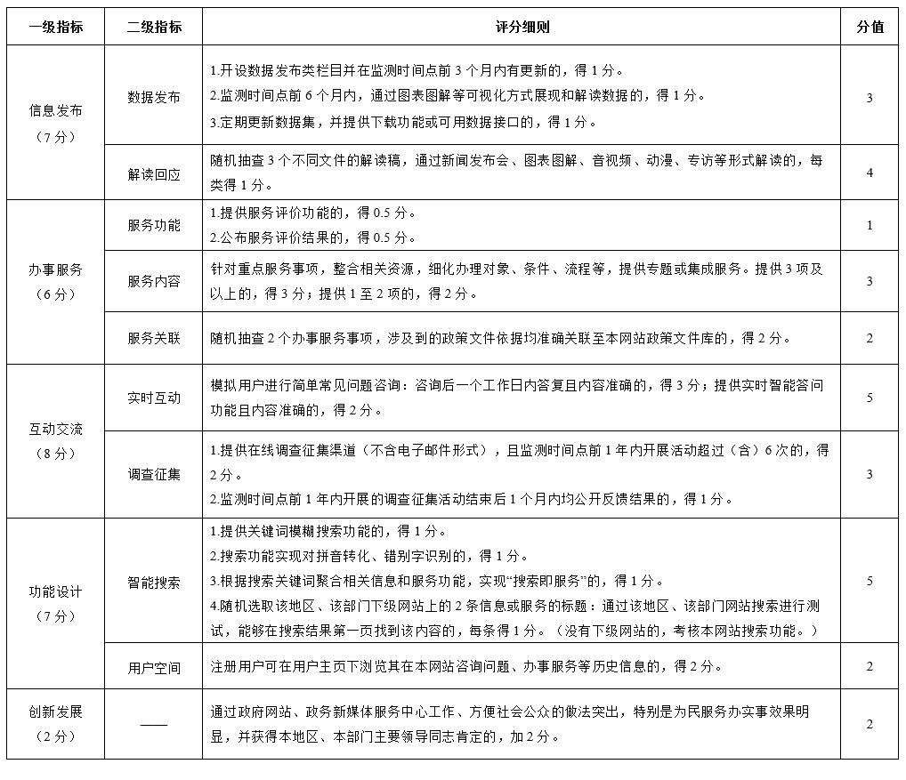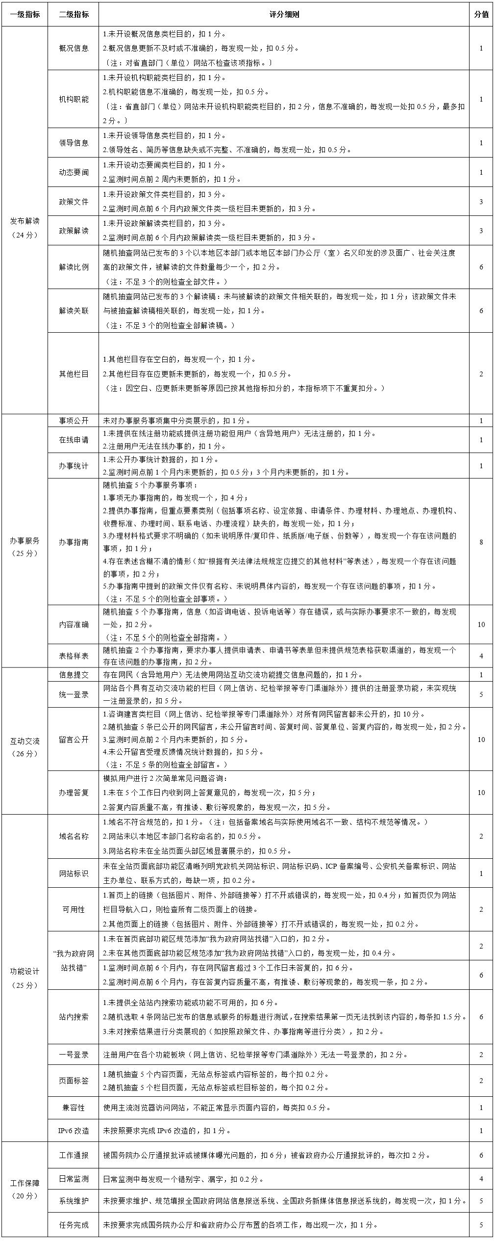 四川省政府网站与政务新媒体监管工作年度考核指标