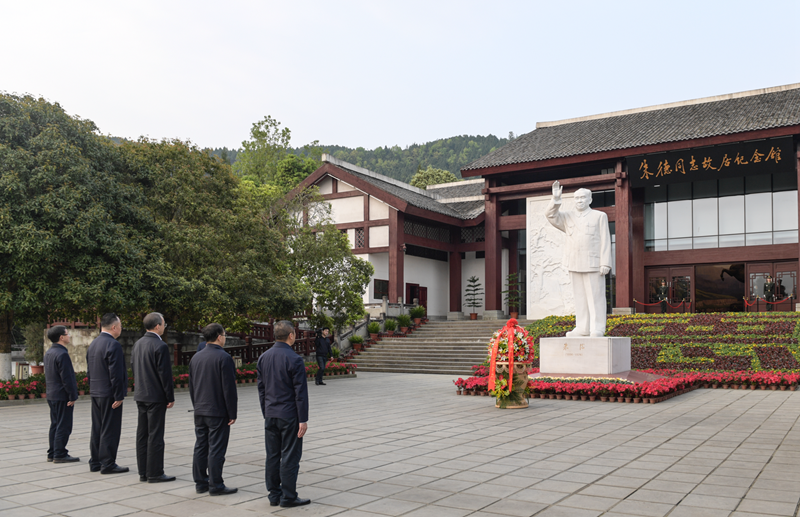3月29日,黄强前往仪陇县朱德故里,向朱德同志汉白玉雕像敬献花篮,行三鞠躬礼。