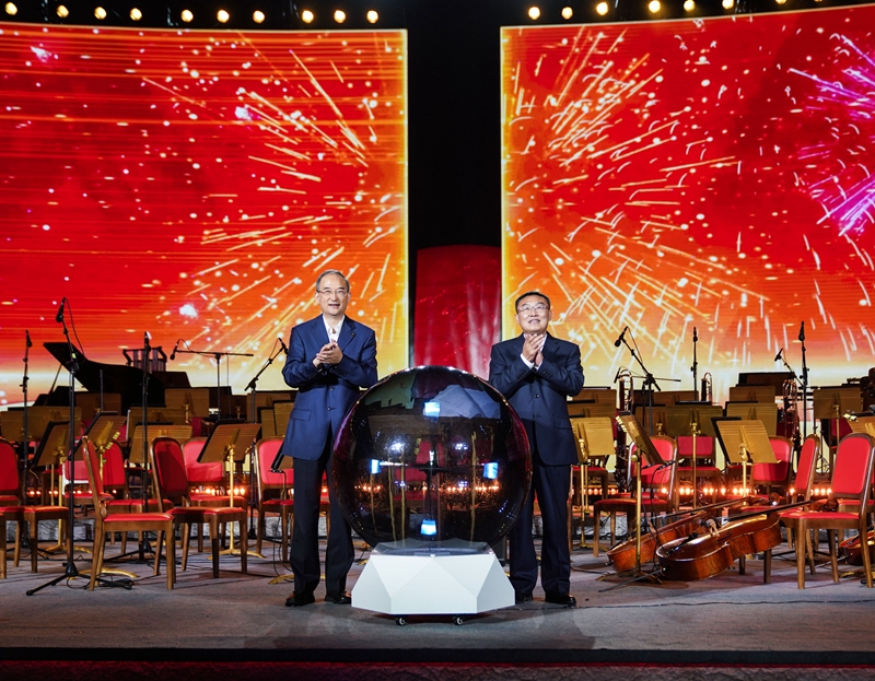 19时50分许,黄强、卢映川共同触摸启动球,全国演艺博览会开幕。