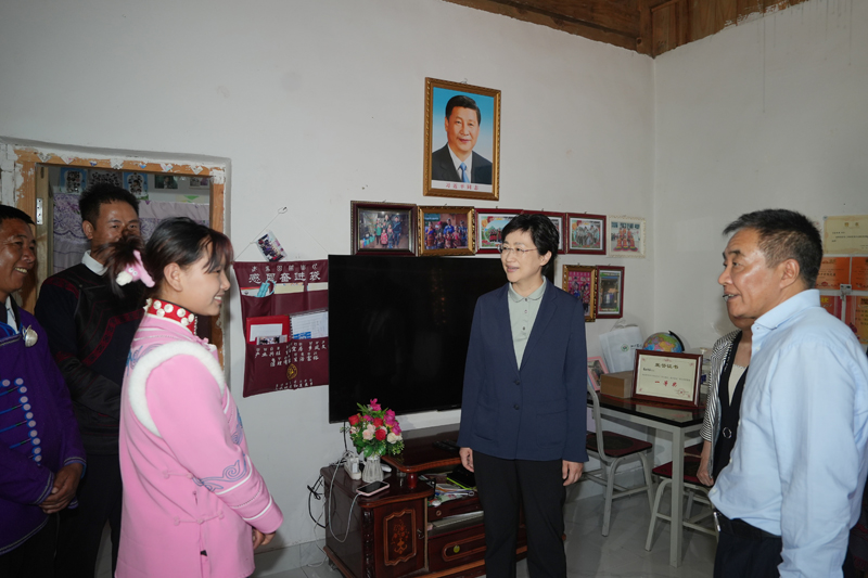 6月24日,施小琳在布拖县特木里镇依撒小学,调研民族地区义务教育均衡发展及校园餐管理等情况。