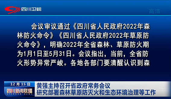 黄强主持召开省政府常务会议 研究部署森林草原防灭火和生态环境治理等工...