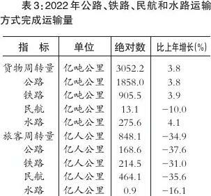 全年通过公路、铁路、民航和水路等运输方式完成货物周转量3052.2亿吨公里,比上年增长3.8%;完成旅客周转量848.1亿人公里,下降34.9%。年末高速公路建成里程9179公里;内河港口年集装箱吞吐能力250万标箱。