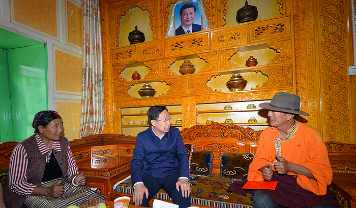 9月16日,省委书记、省人大常委会主任王晓晖到得荣县白松镇日当村调研,在脱贫户曲错家中,与一家人促膝交谈,关切询问家庭收入、医疗保障、子女上学等情况。
