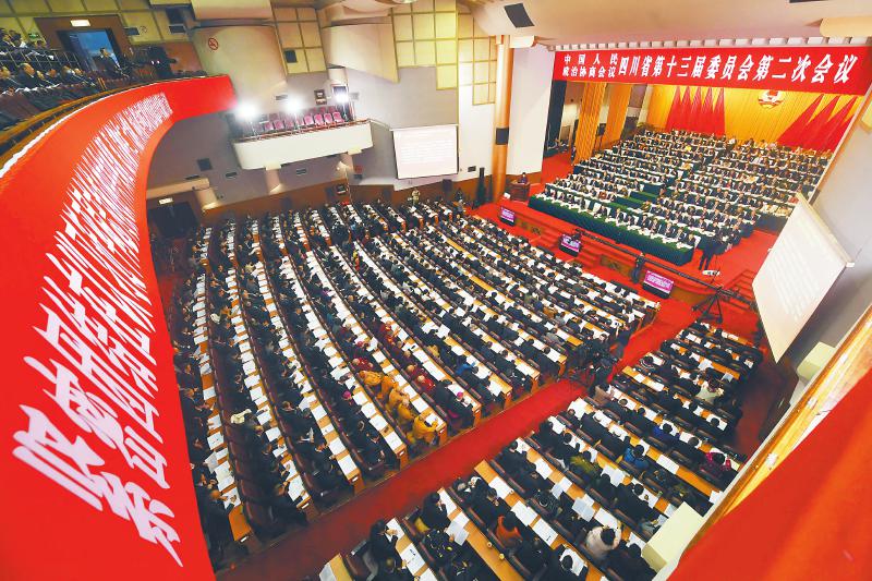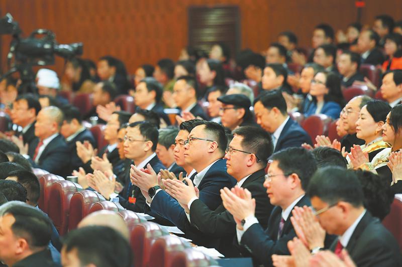 委员们认真聆听大会发言。(记者 肖雨杨 郝飞 摄)