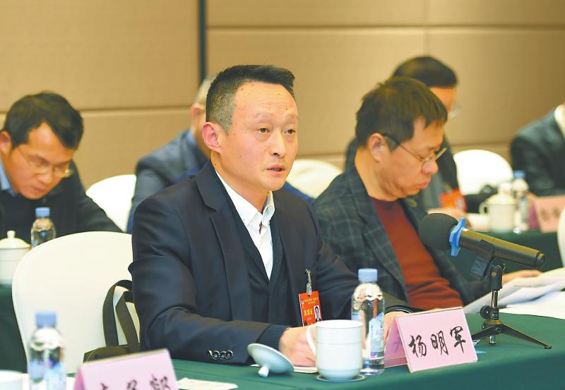 杨明军委员(左)建议,提高“快递进村”工作质效,加速释放农村地区消费需求,畅通城乡经济双向循环,切实助力乡村振兴。
