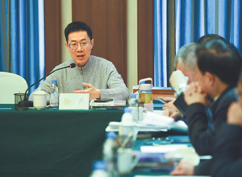 徐科委员(左)建议,科技创新眼光要更为长远,关注5G到6G的技术发展、超算到智算的技术增量,以及超高清视频和未来空间计算的结合,助力四川科技创新发展。