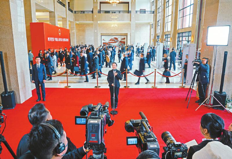 省十四届人大五次会议开设“代表通道”,共安排3场集体采访活动。