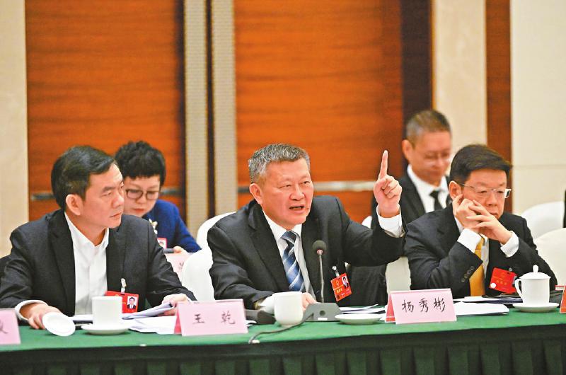杨秀彬代表(中)建议,加快推进高标准农田“建管用”一体化。