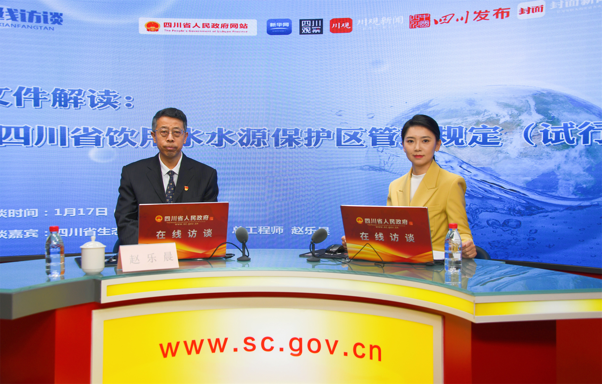 2024年1月1日,经省政府第21次常务会议审议通过的《四川省饮用水水源保护区管理规定(试行)》开始施行。1月17日,省政府网站在线访谈栏目专门邀请四川省生态环境厅总工程师赵乐晨等嘉宾走进直播间,深入解读这份新规并与网友交流互动。