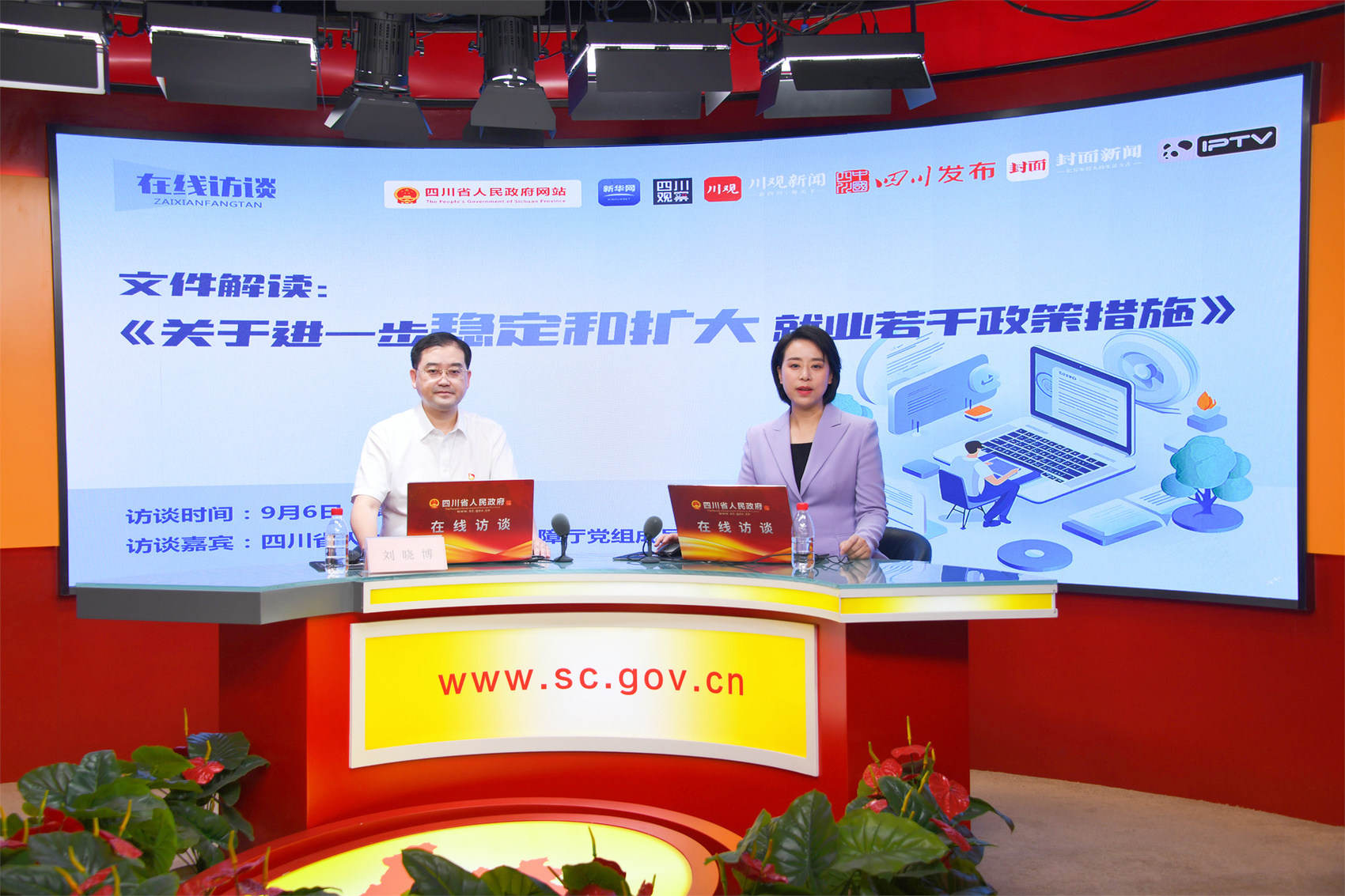 四川省人力资源和社会保障厅副厅长刘晓博(左)做客四川省人民政府网站解读相关政策。