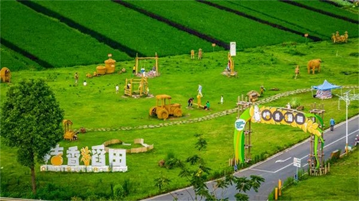 8.青神县竹里稻香:位于青神县青竹街道,竹里稻香是青神县竹艺文化旅游融合发展项目,以建设高品质农田为抓手,开发近郊农业休闲旅游的新模式,充分利用当地村落民居资源,挖掘田野与乡村的潜力,将稻田与文旅有机结合,建设游步道、骑行道、竹艺观景台,打造高标准农田示范区、乡村振兴农旅融合发展示范区、民宿集群示范区。