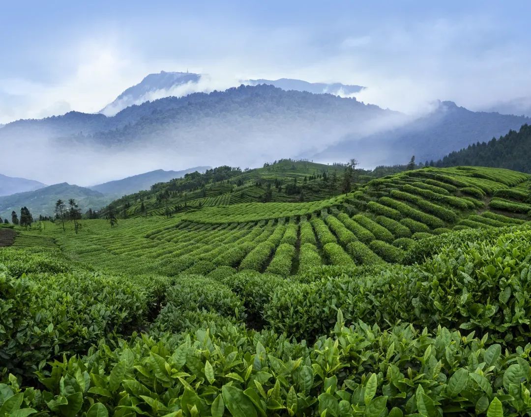 如今广为人知的竹叶青茶,是新中国建立后创制的一款名茶。竹叶青茶核心产地位于山腰的万年寺、清音阁、白龙洞、黑水寺一带,海拔800~1500米,终年雨雾缭绕,是世界公认的黄金产茶带。