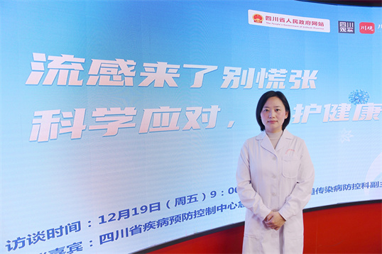 各位网友,大家好,欢迎参加四川省人民政府网站在线访谈栏目。近期,我国南、北方省份流感病毒检测阳性率持续上升,我省流感监测数据显示: 11月以来哨点医院流感样病例标本中流感阳性率呈现快速上升趋势,目前仍处于高流行水平。为了让广大网友深入了解“四川流感流行形势及防控”的有关内容。四川省人民政府网站联合四川省疾病预防控制局联合推出健康科普系列专访。冬季是急性呼吸道传染病的高发季,其中流感备受关注。什么是流感?今年的流行特点是什么?流感来了,我们应该怎么办?带着这些疑问,今天我们邀请到四川省疾病预防控制中心急传综合与呼吸道传染病防控科副主任医师周丽君,就流感流行形势及防控主题与广大网友进行交流。