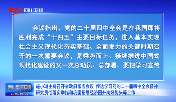 施小琳主持召开省政府常务会议 传达学习党的二十届四中全会精神