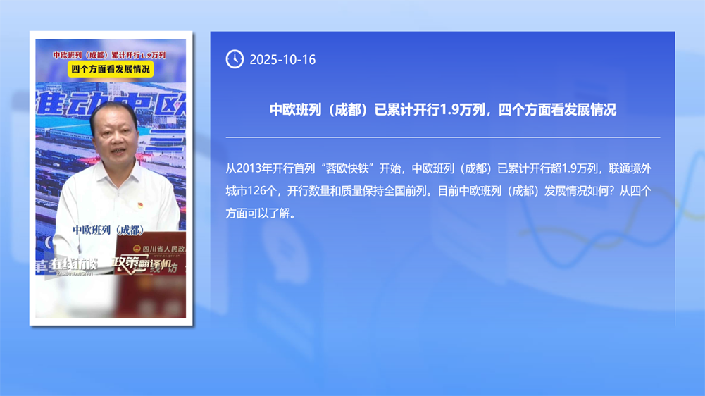 好的,主持人。中欧班列应中欧投资贸易的稳步发展而产生,随共建“一带一路”的不断深入而壮大,已成为共建“一带一路...