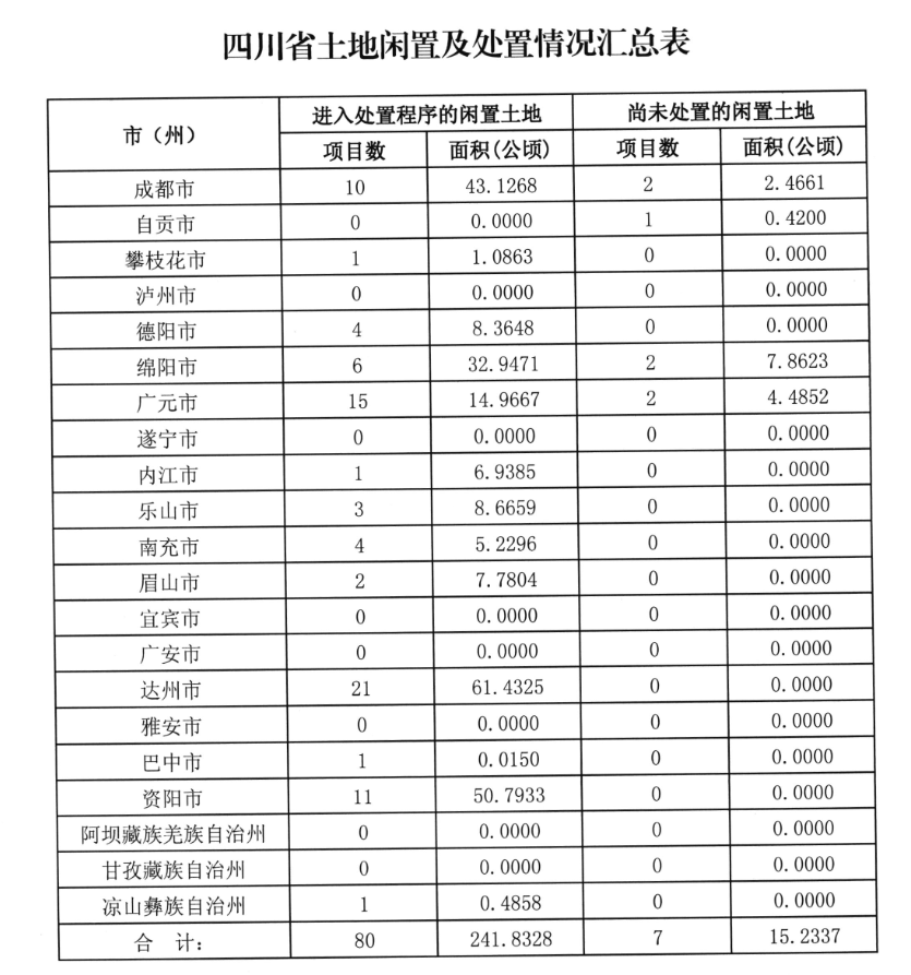 2017四川省土地闲置及处置情况汇总表