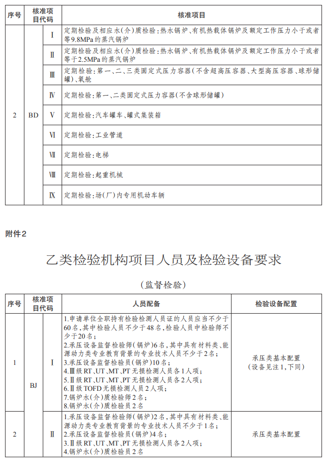 2.乙类检验机构项目人员及检验设备要求(监督检验)