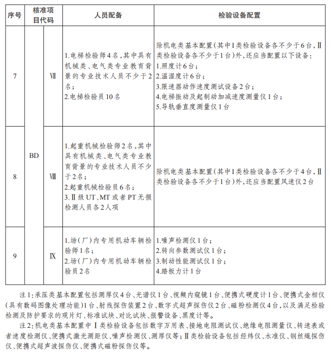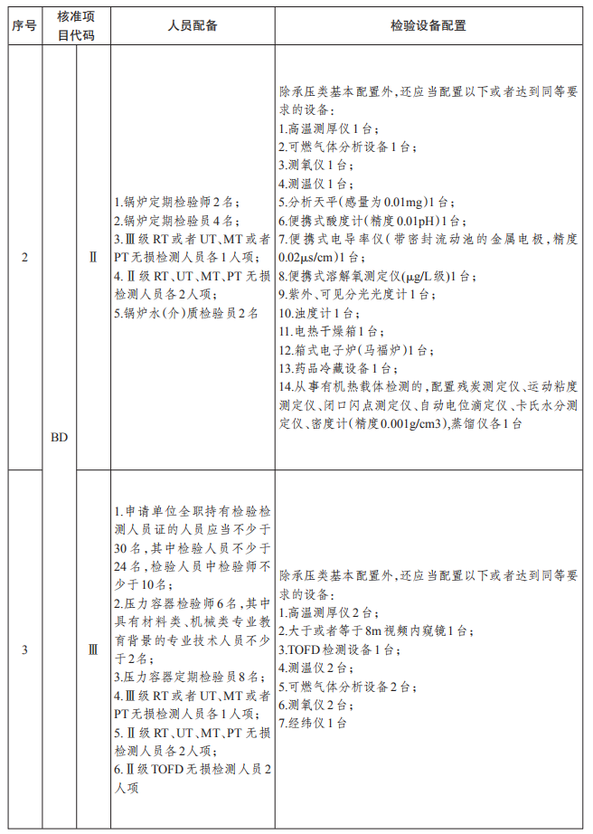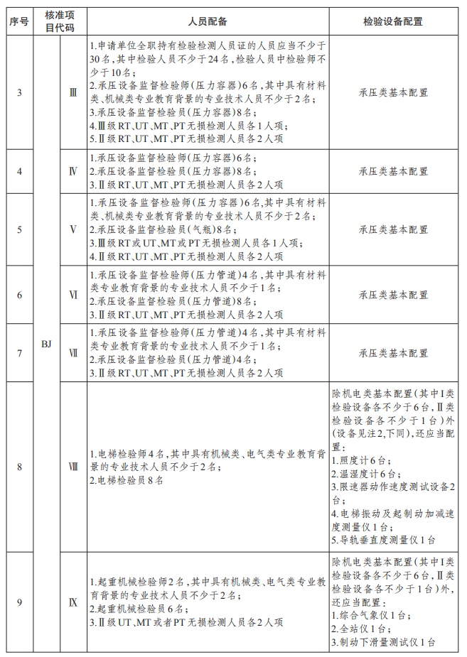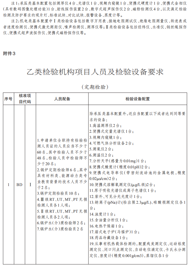 3.乙类检验机构项目人员及检验设备要求(定期检验)
