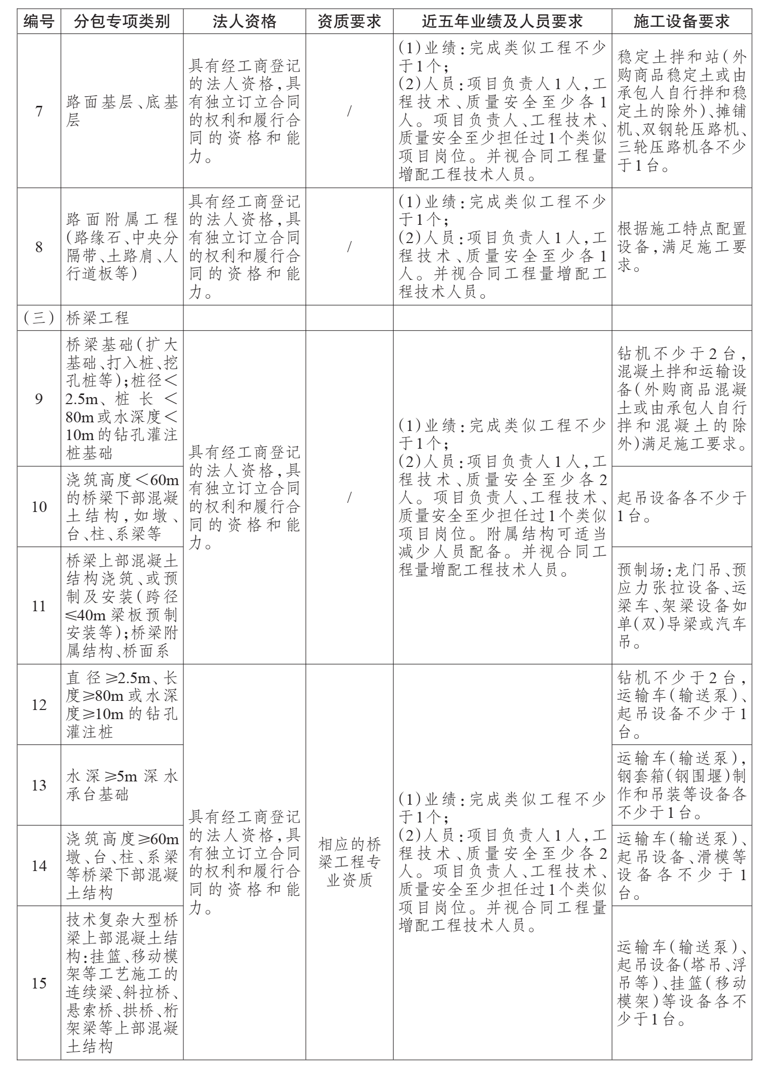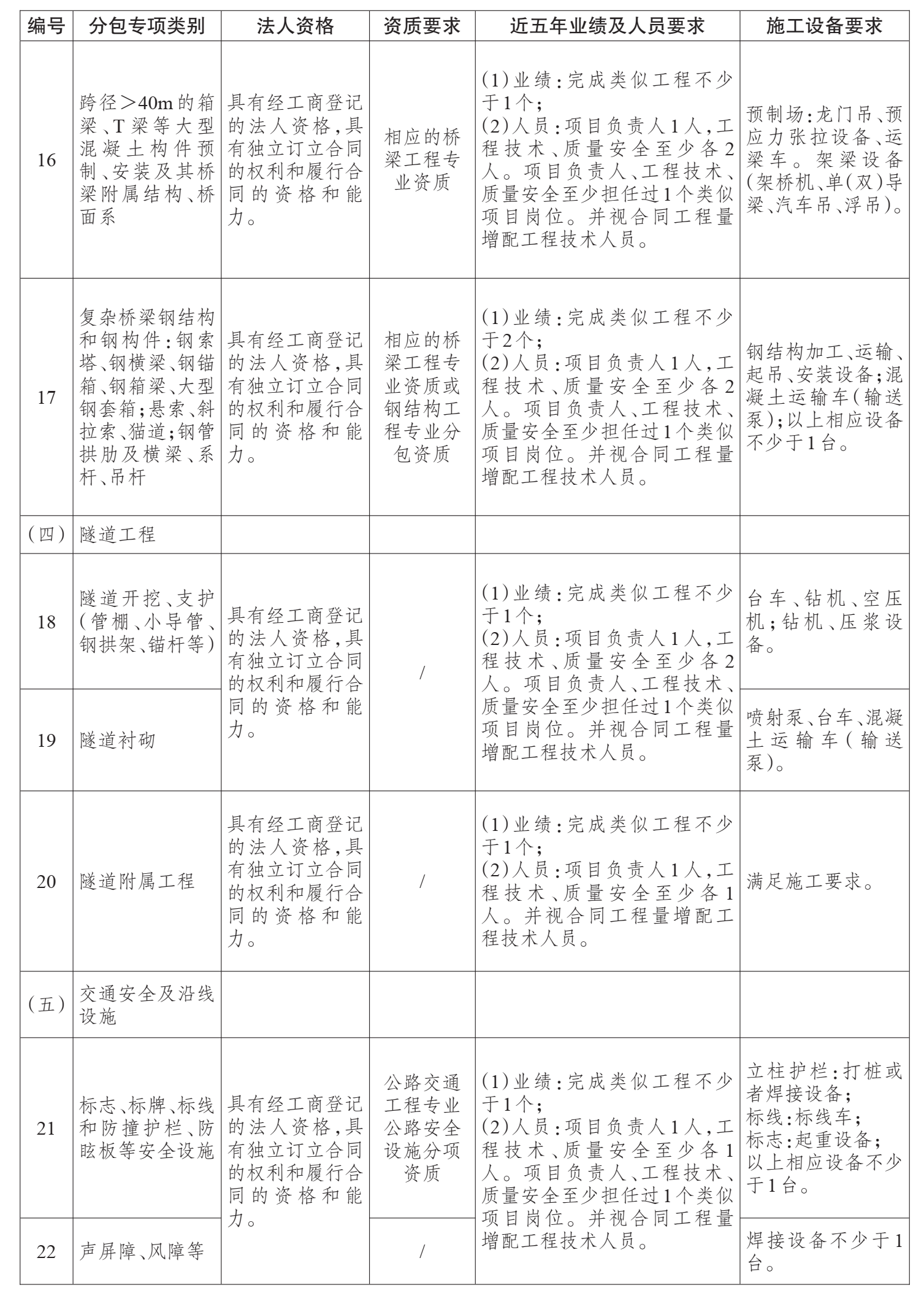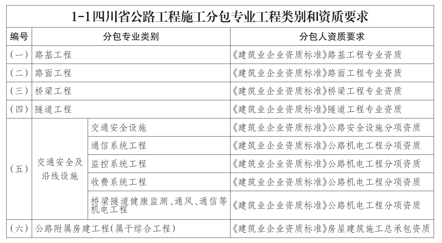 附件:1.1-1四川省公路工程施工分包专业工程类别和资质要求