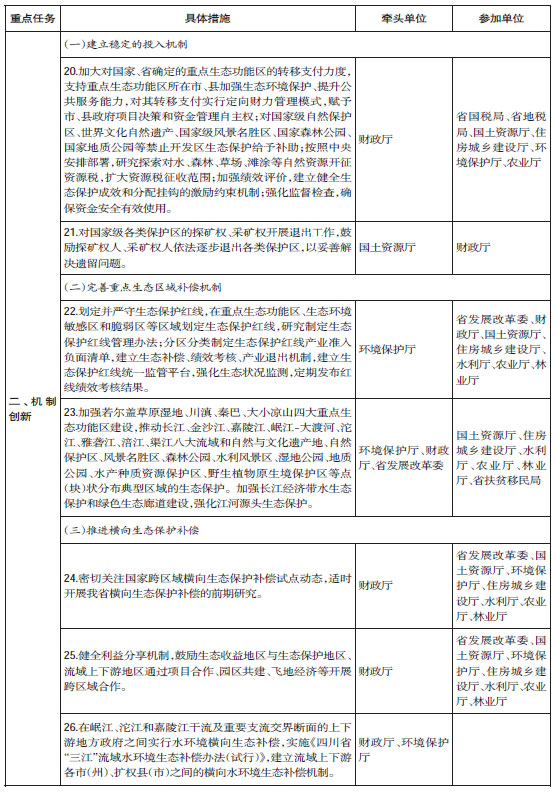 附件:四川省健全生态保护补偿机制重点任务分工方案