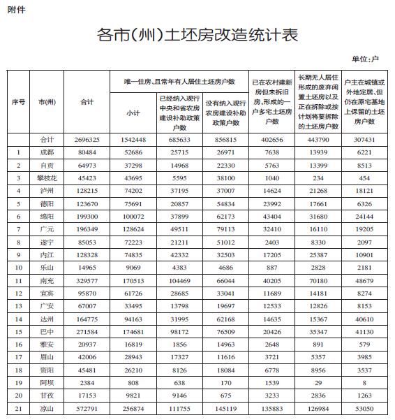 附件:各市(州)土坯房改造统计表