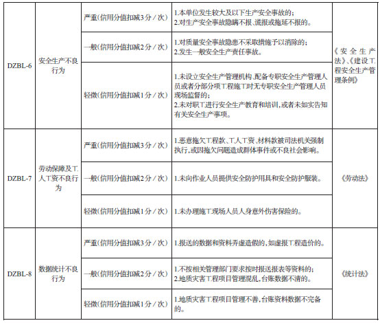 第九条 地质灾害防治市场主体信用评价实行一票否决制,凡发生严重失信行为的,列入严重失信黑名单且其信用等级一律降为D级,同时向社会公布。上述严重失信行为包括: