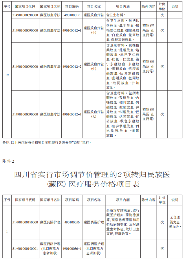 2.四川省实行市场调节价管理的2项转归民族医(藏医)医疗服务价格项目表