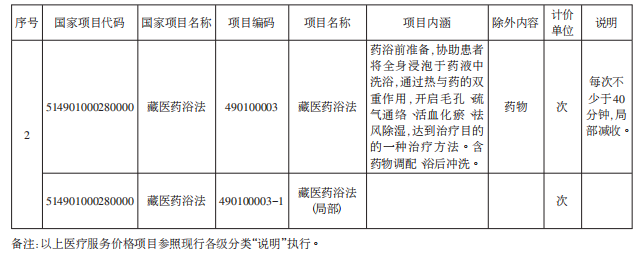 三、“藏医药浴护理”等2项医疗服务价格项目实行市场调节价管理(详见附件2),公立医疗机构应综合考虑服务成本、患者需求等因素,自主确定执行标准并按规定报医保部门备案。