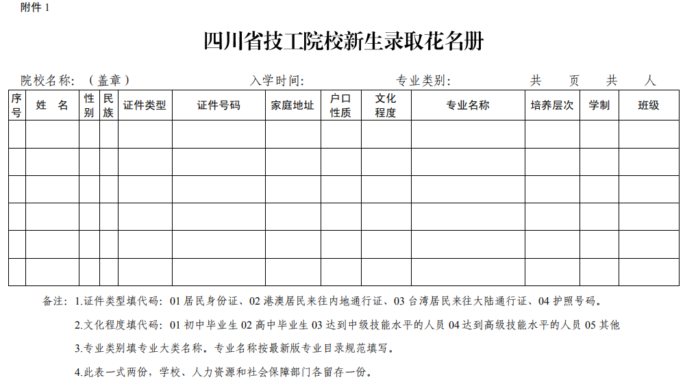 第八条 技工院校应在截止日期前进行电子注册,核实学生基本情况,及时录入全国技工院校信息管理系统(以下简称管理系统),并由“校长用户”审核后,报所在市(州)人力资源社会保障部门批准。填写《四川省技工院校新生录取花名册》(附件1),纸质版审核无误盖章后,报市(州)人力资源社会保障部门备案。