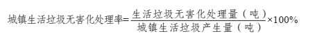 指标解释:指城镇建成区内生活垃圾无害化处理量占垃圾产生量的比例。在统计上,由于生活垃圾产生量不易取得,可用清运量代替。有关标准参照《生活垃圾焚烧污染控制标准》(GB18485-2014)和《生活垃圾填埋场污染控制标准》(GB16889-2008)执行。依据《关于印发〈“十三五”全国城镇生活垃圾无害化处理设施建设规划〉的通知》(发改环资〔2016〕2851号)要求,特殊困难地区可适当放宽。