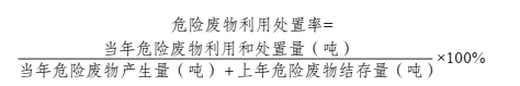 指标解释:指行政区域内当年危险废物实际利用量与处置量占应利用处置量的比例。危险废物指列入《国家危险废物名录》或者根据国家规定的危险废物鉴别标准和鉴别方法认定具有危险特性的固体废物。