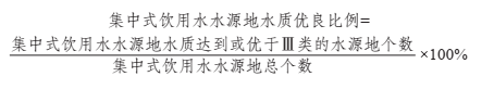 指标解释:指行政区域内集中式饮用水水源地,其地表水水质达到或优于《地表水环境质量标准》(GB3838-2002)Ⅲ类标准、地下水水质达到或优于《地下水质量标准》(GB/T14848-2017)Ⅲ类标准的水源地个数占水源地总个数的比例。