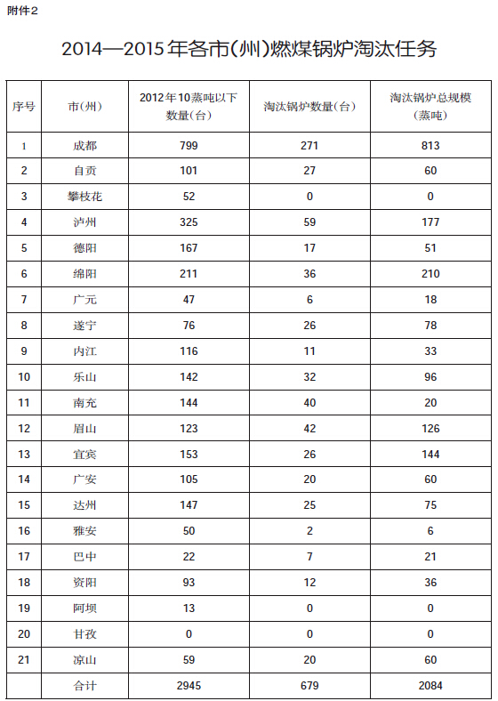 2.2014—2015年各市(州)燃煤锅炉淘汰任务