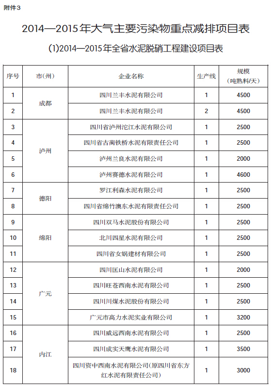 3.2014—2015年大气主要污染物重点减排项目表