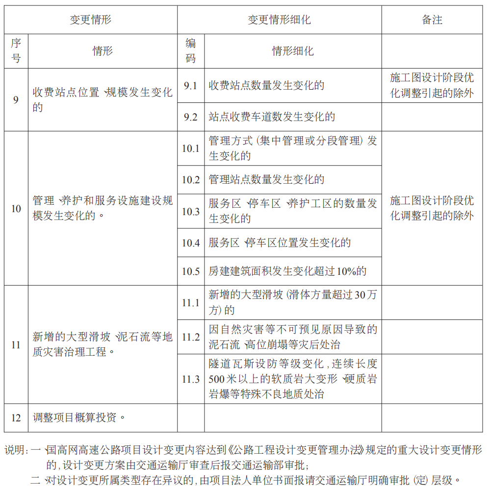 第十条 高速公路建设项目设计变更分为重大设计变更和一般设计变更两类。重大设计变更主要情形有(具体情形详见附件1):