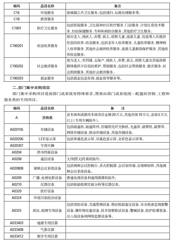 二、部门集中采购项目