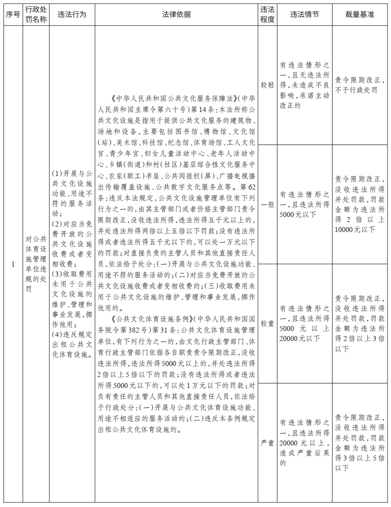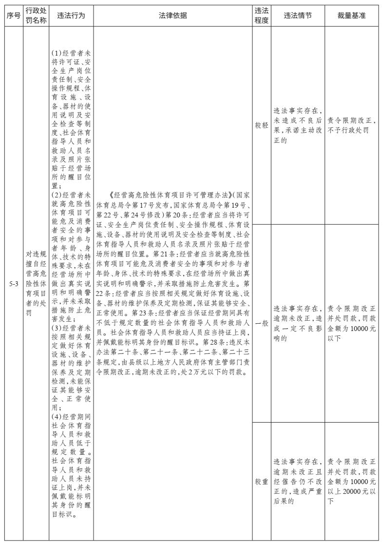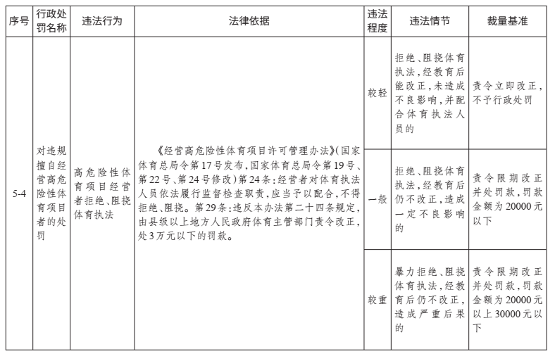 第五条 体育行政处罚实施机关行使行政处罚自由裁量权,应当按照《四川省体育行政处罚自由裁量权基准》执行。