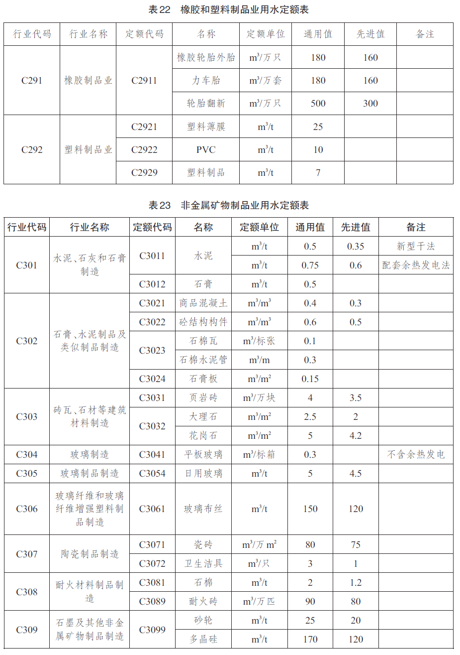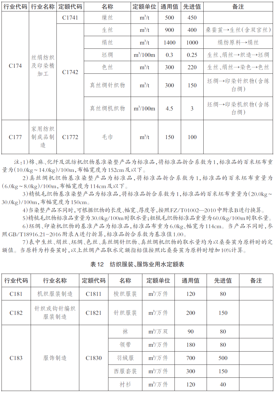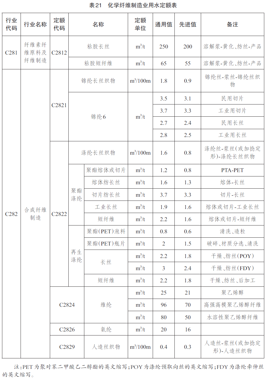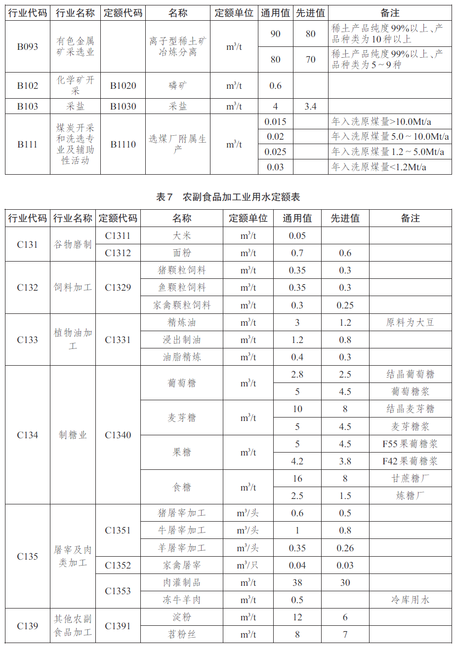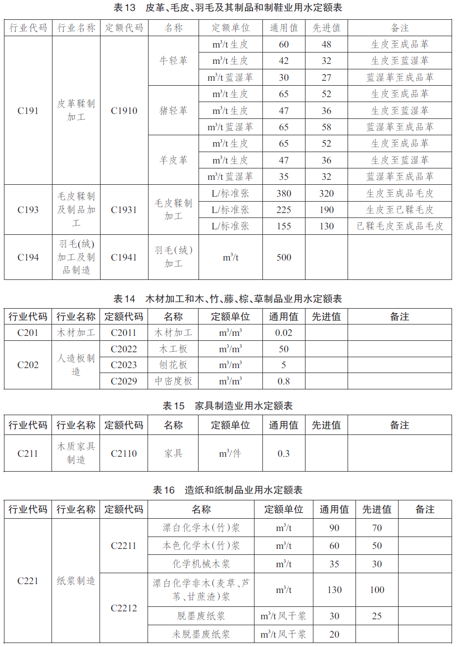 工业产品用水定额先进值用于新建(改建、扩建)企业的水资源论证、取水许可审批和节水评价;通用值用于现有企业的日常用水管理和节水考核。