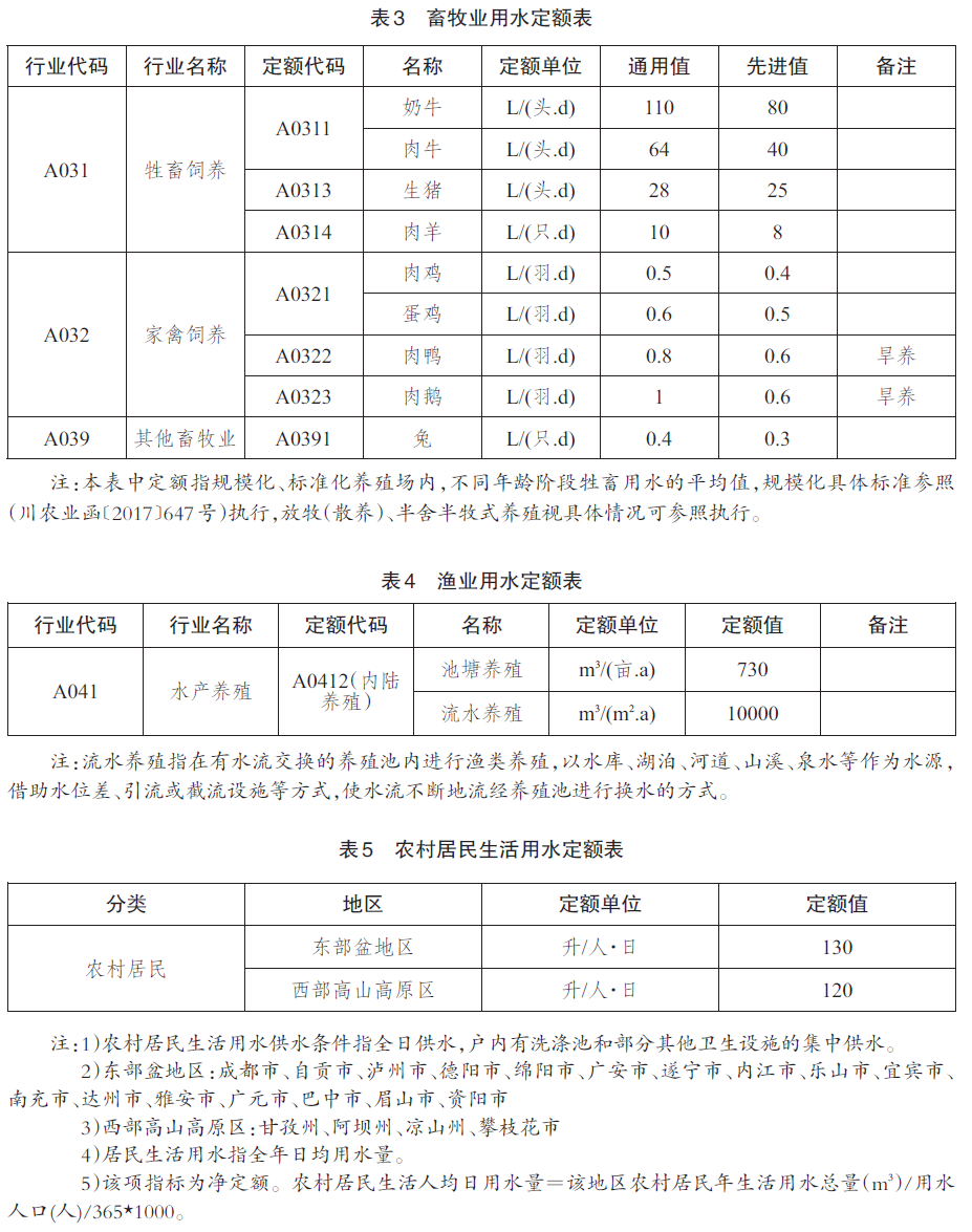 本定额适用于四川省行政区域范围内主要农林牧渔业、工业、建筑业、服务业、城市公共生活和居民生活用水定额。
