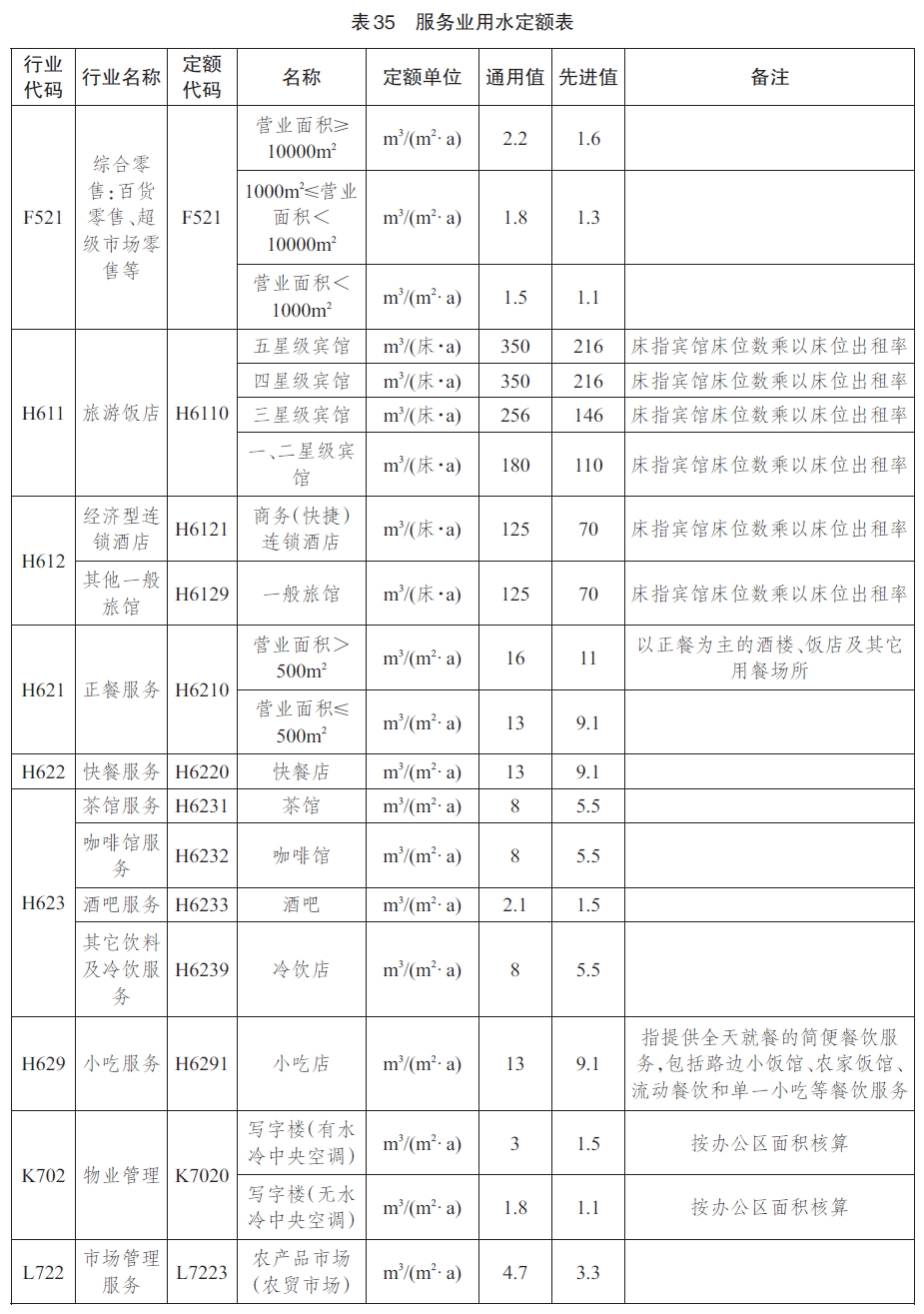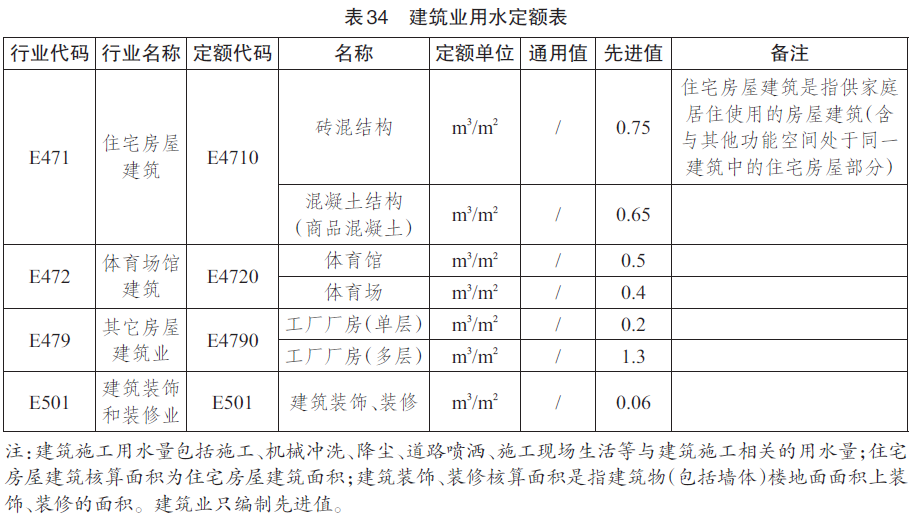 建筑业用水定额见表34,服务业用水定额见表35。