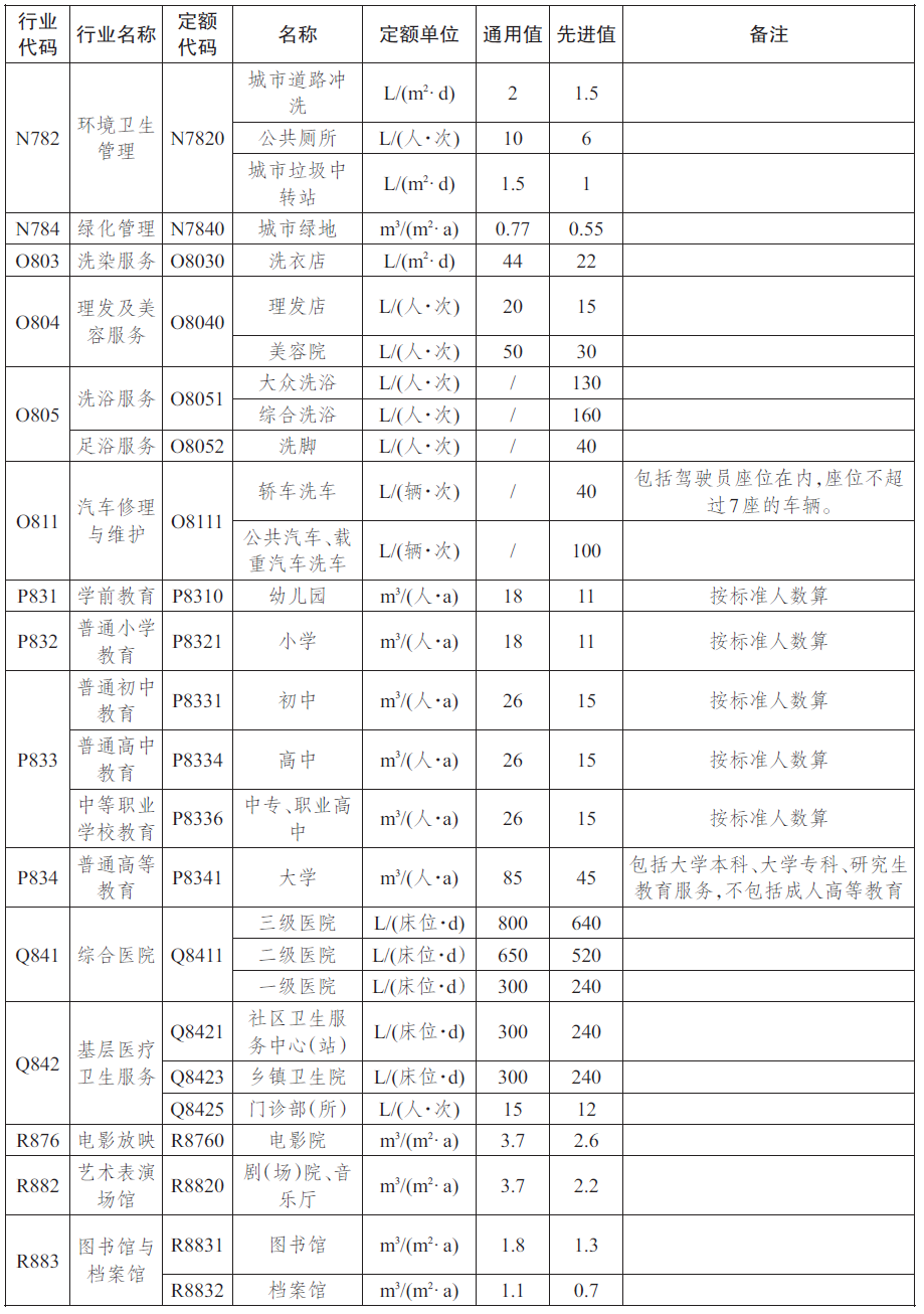 本定额规定了用水定额的术语和定义、主要农业、工业、建筑业及服务业等行业和生活用水定额。