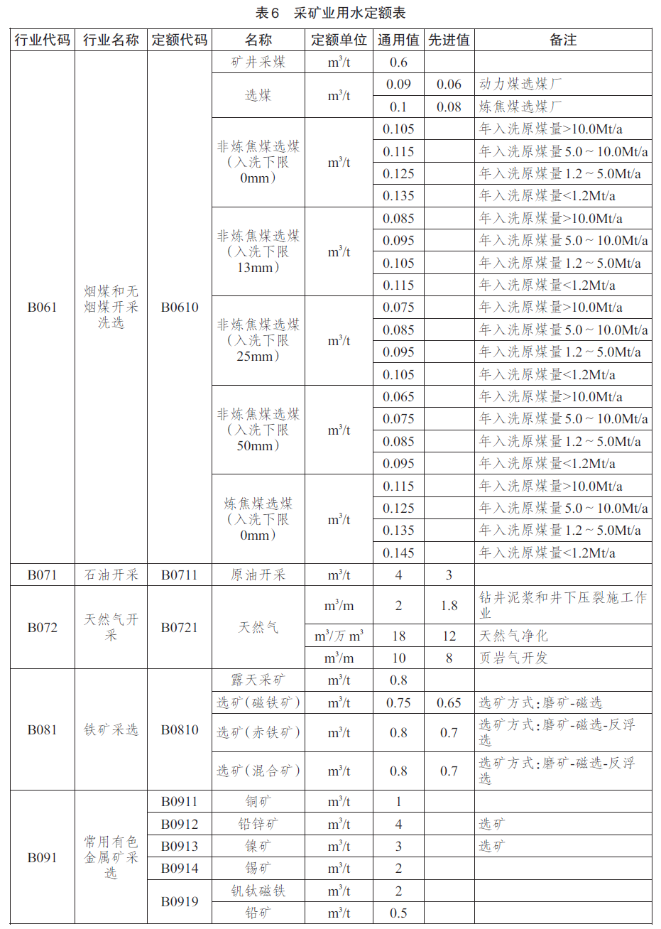 主要工业产品用水定额见表6~表33。