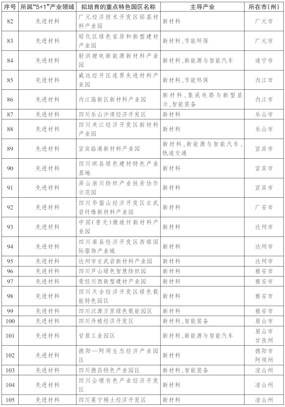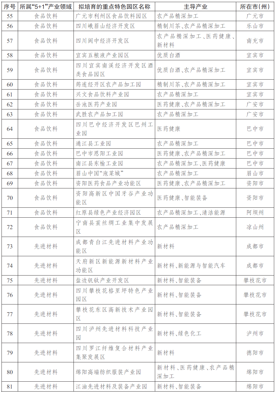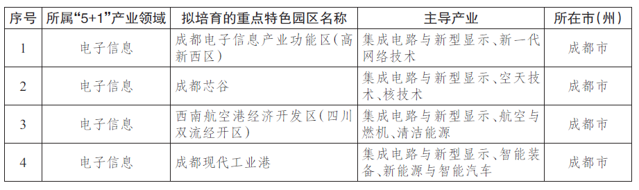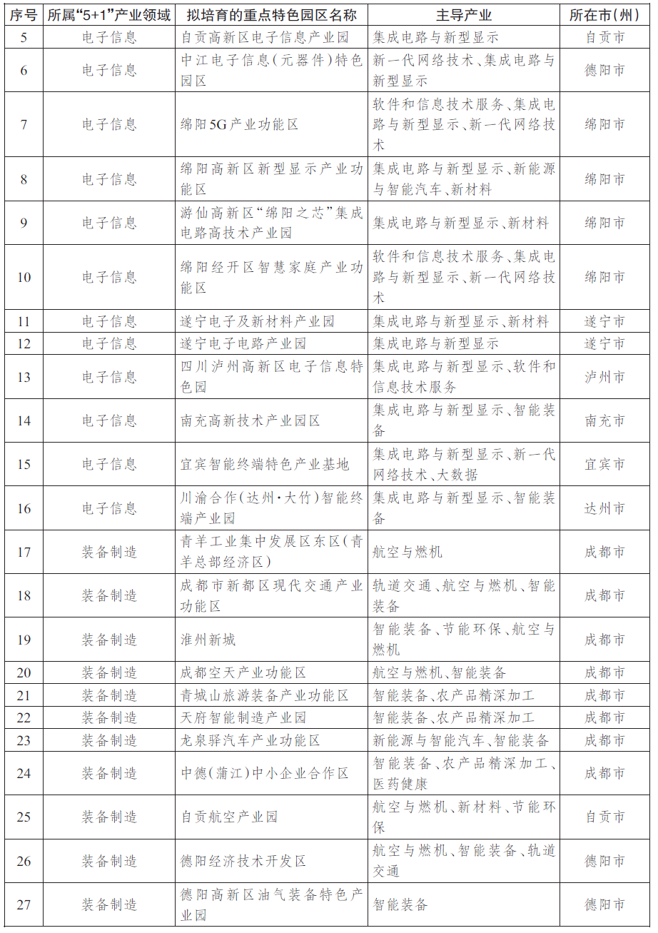 附件:四川省“5+1”重点特色园区培育发展三年行动计划培育园区名单